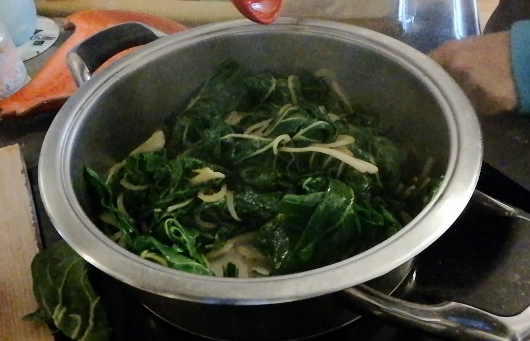 Ensuite, ajoutez les feuilles de blettes que vous aurez préalablement triées et lavées. E
