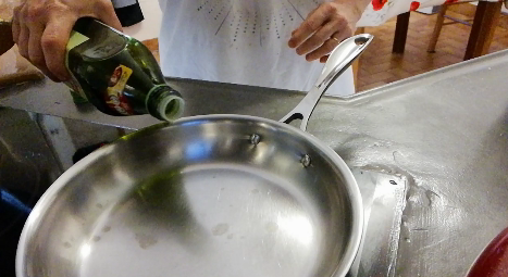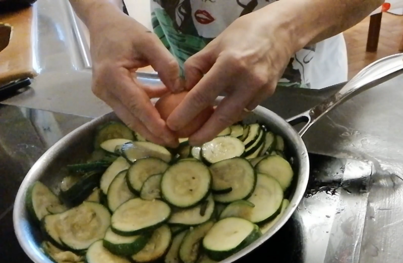 Mettez de l'huile dans une poêle chaude et versez les courgettes