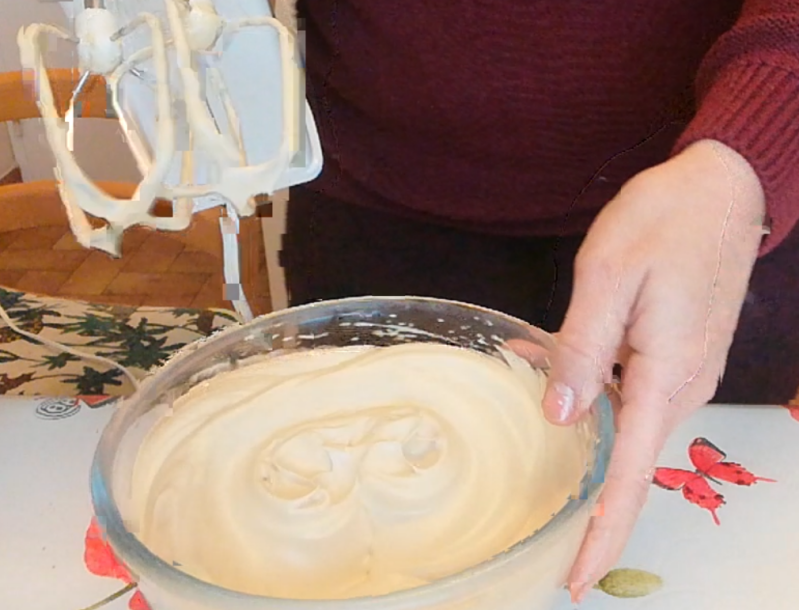 Battez les blancs avec le sucre. Il faut que la texture devienne crémeuse et mousseuse (un peut comme une chantilly