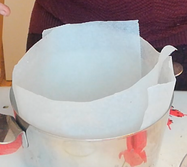 Chemisez le fond et les parois d'un moule rond à l'aide de papier sulfurisé.