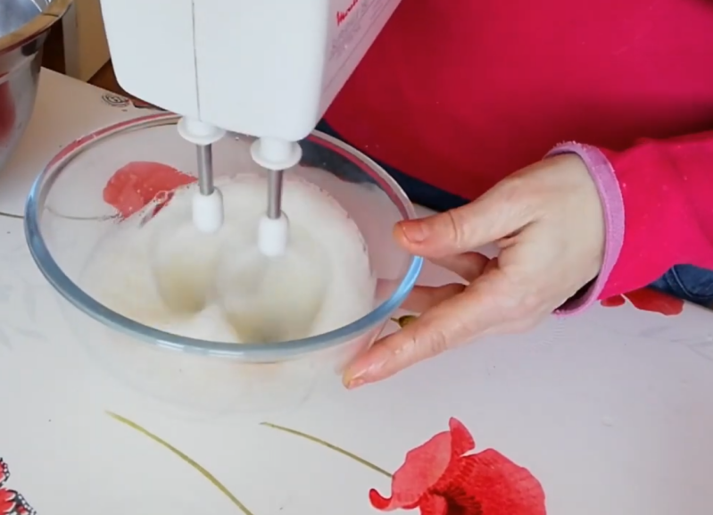 Battez les jaunes avec le sucre jusqu'à ce que mélange blanchisse