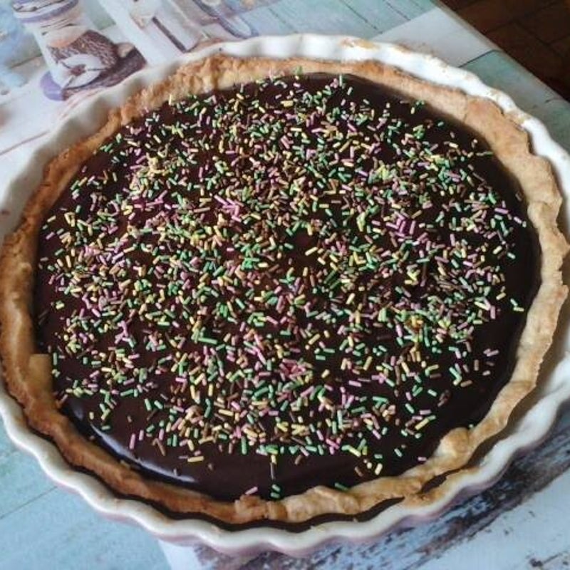 Versez la ganache sur la pâte et placez la tarte au chocolat au réfrigérateur pendant 2 heures minimum